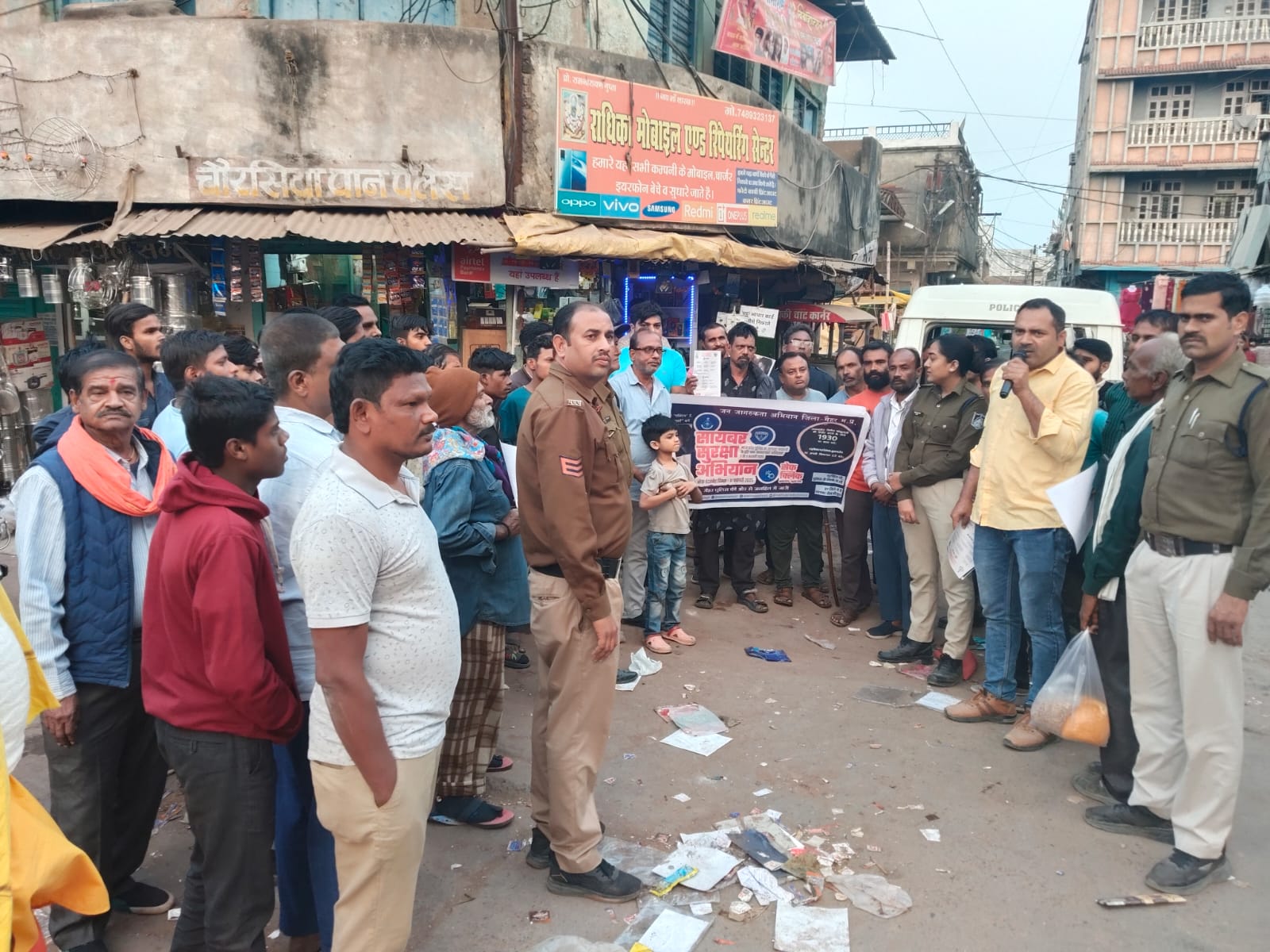 मैहर पुलिस द्वारा साइबर फ्रॉड अपराधो की रोकथाम के लिये ” सेफ क्लिक ” जागरूकता अभियान के तहत आज दिनांक 05.02.2025 को शहरी एवम ग्रामीण क्षेत्रों के सार्वजानिक स्थानों पर आमजन को साइबर संबंधी अपराधों के प्रति जागरूक करने हेतू कोतवाली मैंहर थाना छेत्र में जागरूकता कार्यक्रम करते हुए आमजन को साइबर फ्रॉड , हैकिंग, अनजाने नम्बरो से वीडियो कॉल, डिजिटल अरेस्ट, ओटीपी, अनजाने लिंक पर क्लिक करने के संभावित खतरों के प्रति जागरूक किया गया एवम पंपलेट बांटे गये ।